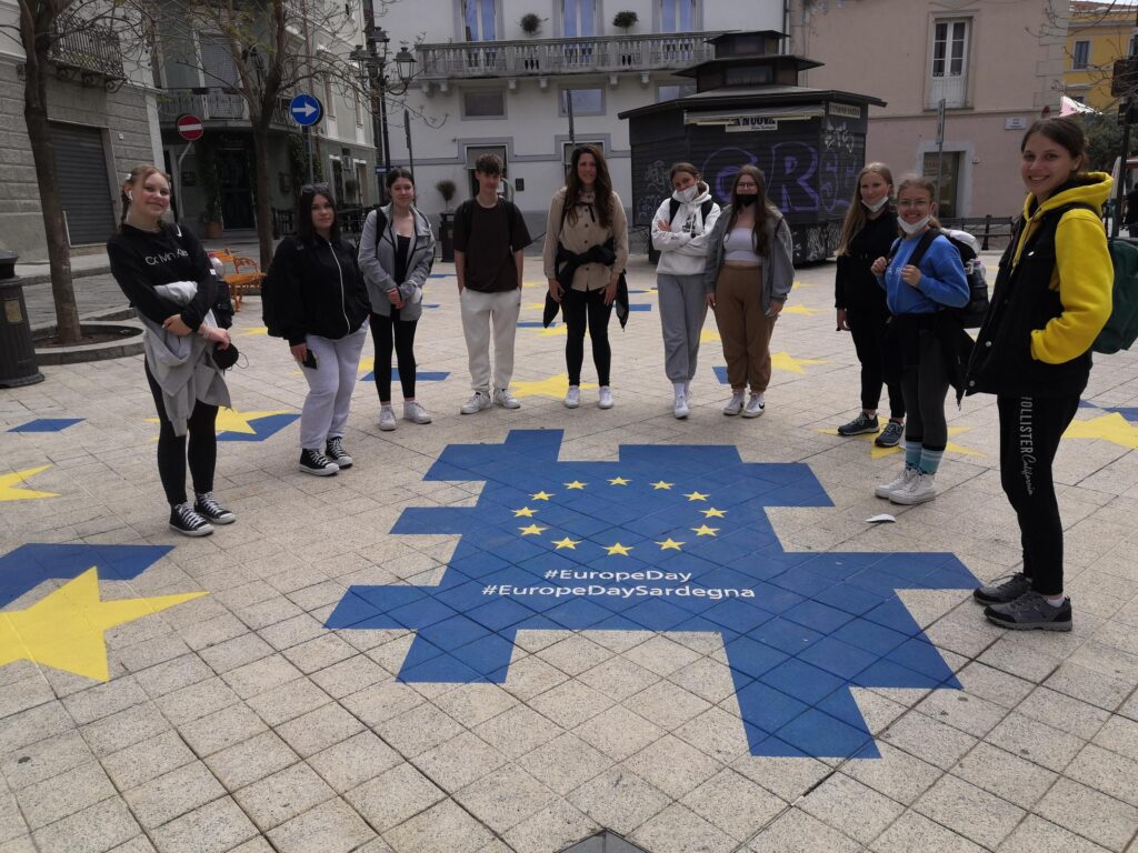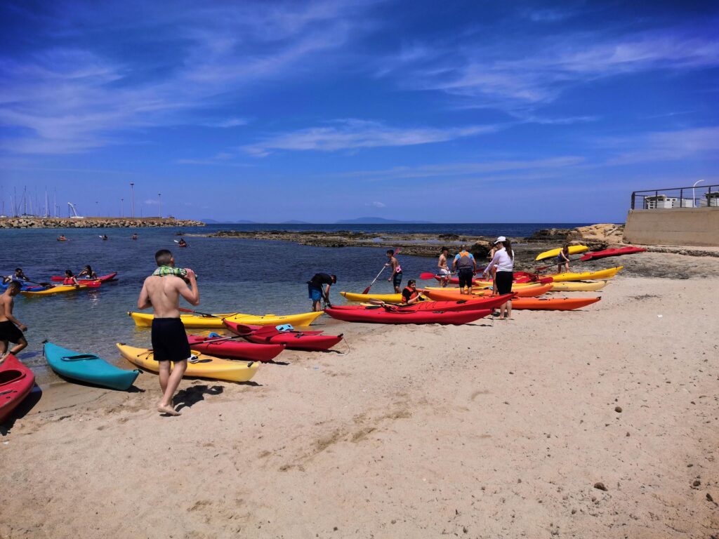 Der erste Tag an der direkt am Meer gelegenen Schule, dem Liceo Nautico, begann mit einem kleinen Empfang und dann ging es direkt an den Strand, auf dem schon Kajaks auf uns warteten. Während der Tour zum Nachbarstrand ging es rund um Felsen, durch Brücken und sogar in eine kleine Tropfsteinhöhle. Bei den Kennenlernspielen am Strand am Nachmittag konnten sich die gastgebenden sardischen Schüler, die spanischen Partnerschüler aus Zamorra und die deutschen Schüler aus Nieder-Olm beschnuppern.