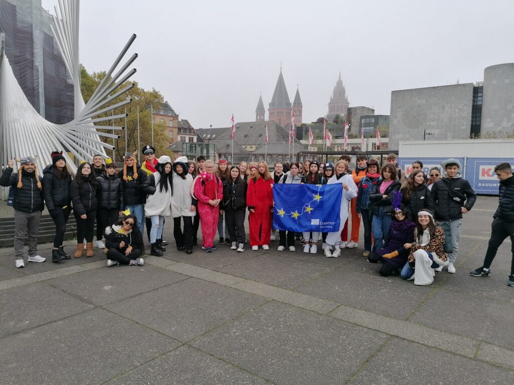 Die Lehrerinnen S. May, Y. Rigoni, N. Manzl und T. Treitz hatten mit Unterstützung von Kolleg*innen Programmpunkte wie den Besuch des Wasserwissenswerks (Kempfeld), eine Rangertour mit Schwerpunkt Klimawandel (Hunsrück Nationalpark) und handlungsorientierte, nachhaltige Workshops vorbereitet. Bei sportlichen Aktivitäten wie Schlittschuhfahren, Schwimmen sowie „Bubble Ball“ kam man sich genauso näher wie bei einer Rallye zu den 17 Zielen („SDGs“) in der Mainzer Innenstadt am 11. November. Bei der Abschiedsparty wurden die letzten englischsprachigen Bande geknüpft, bevor sich die Gäste samstags wehmütig auf den Heimweg machten. Alle Beteiligten blicken auf eine intensive, anstrengende, aber auch bereichernde Zeit zurück. Die Besuche in Italien und Spanien werden die jungen Menschen ebenso prägend in Erinnerung behalten wie Toleranz, Geduld und Diplomatie, die man als Gastgeber*in benötigt.