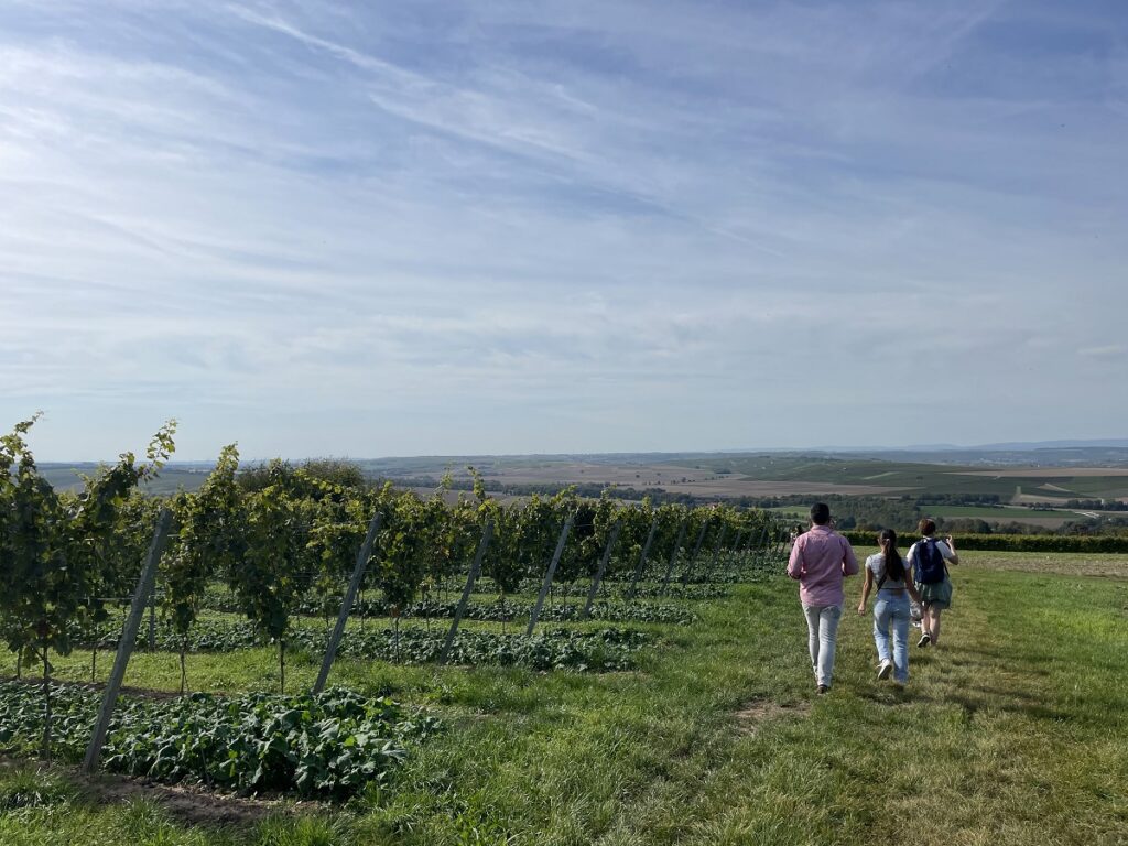 Von Montag bis Freitag wurde ein abwechslungsreiches Programm auf die Beine gestellt, sodass die portugiesischen Gäste sowohl unsere Schule, aber auch Nieder-Olm und die Umgebung kennenlernen durften. Neben verschiedenen Unterrichtsstunden bestaunten die Gäste unter anderem unseren Gemüsegarten und hatten die Möglichkeit, amerikanischen Zeitzeugen zuzuhören, deren Vorfahren aus Nieder-Olm stammten. Beim Tagesausflug nach Mainz erhielten sie mit einer Stadtrallye viele Informationen zur Landeshauptstadt und durften im Gutenbergmuseum selbst drucken. Eine Wanderung durch die Weinberge samt Picknick mit typischen Leckereien rundete das Sightseeing-Programm ab. Im Anschluss an die schulischen Aktivitäten hatten die deutschen Gastgeberinnen und Gastgeber noch viele weitere Ideen, um ihren Partnerinnen und Partneren ihre Heimat näherzubringen. Am letzten Abend trafen sich alle beim gemeinsamen Abendessen in einem portugiesischen Restaurant.